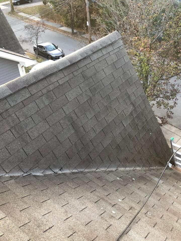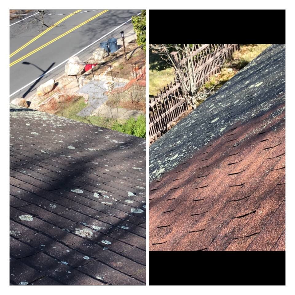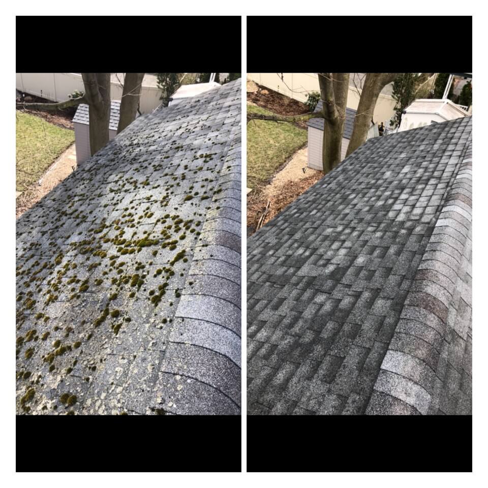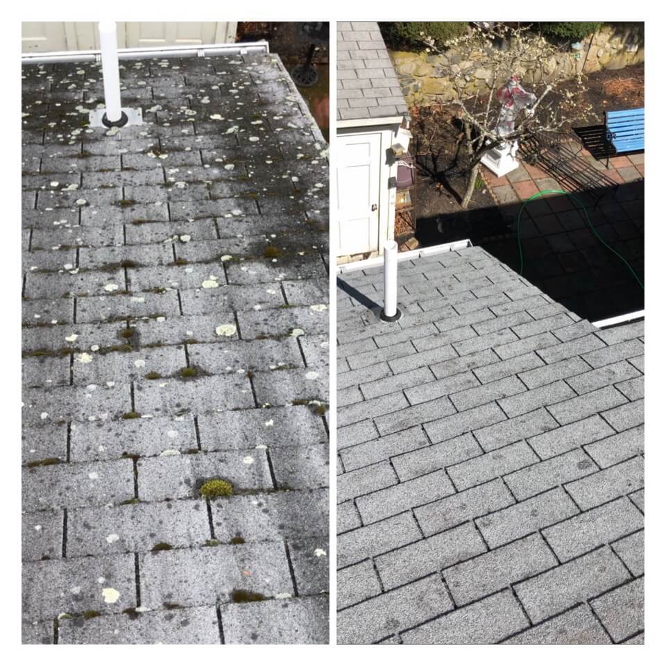 HiCleaners is the most experienced company in Wrentham, MA that deals with roof washing and roof soft washing. All of our employees are trained to recognize precise solution mixing ratios to provide you with the safest and most effective soft washing service. Roofs are a commonly neglected part of a house due to the fact that most people don’t have ladders to access it, so it is very easy to just leave it alone and forget about problems that may start to arise. Just like many home owners, discoloration and small bits of moss on a roof can be overlooked because of the misconception that it is just aesthetic. However, it isn’t just aesthetic, the moss slowly lifts the granules off the shingles which in turn shorten the life of the shingle. The moss also spreads, just like any bacteria if it is left alone for too long, it can quickly become a problem that spirals out of control. Call HiCleaners for a free quote, we only use the most advanced eco-friendly solutions and equipment to make sure the job is done right, for the safety of the employees, your plants, grass, pets, and children.